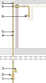 Ramal de distribuição de 12 m de comprimento, colocado superficialmente e fixado ao paramento, formado por tubo de polietileno reticulado de alta densidade (PE-Xb), de 20 mm de diâmetro exterior e 1,9 mm de espessura "TERMOCONCEPT"; purgador automático de ar de latão e válvula de seccionamento de esfera, metálica, de 20 mm de diâmetro, com comando oculto. Inclusive material auxiliar para montagem e fixação, acessórios e peças especiais. | ||